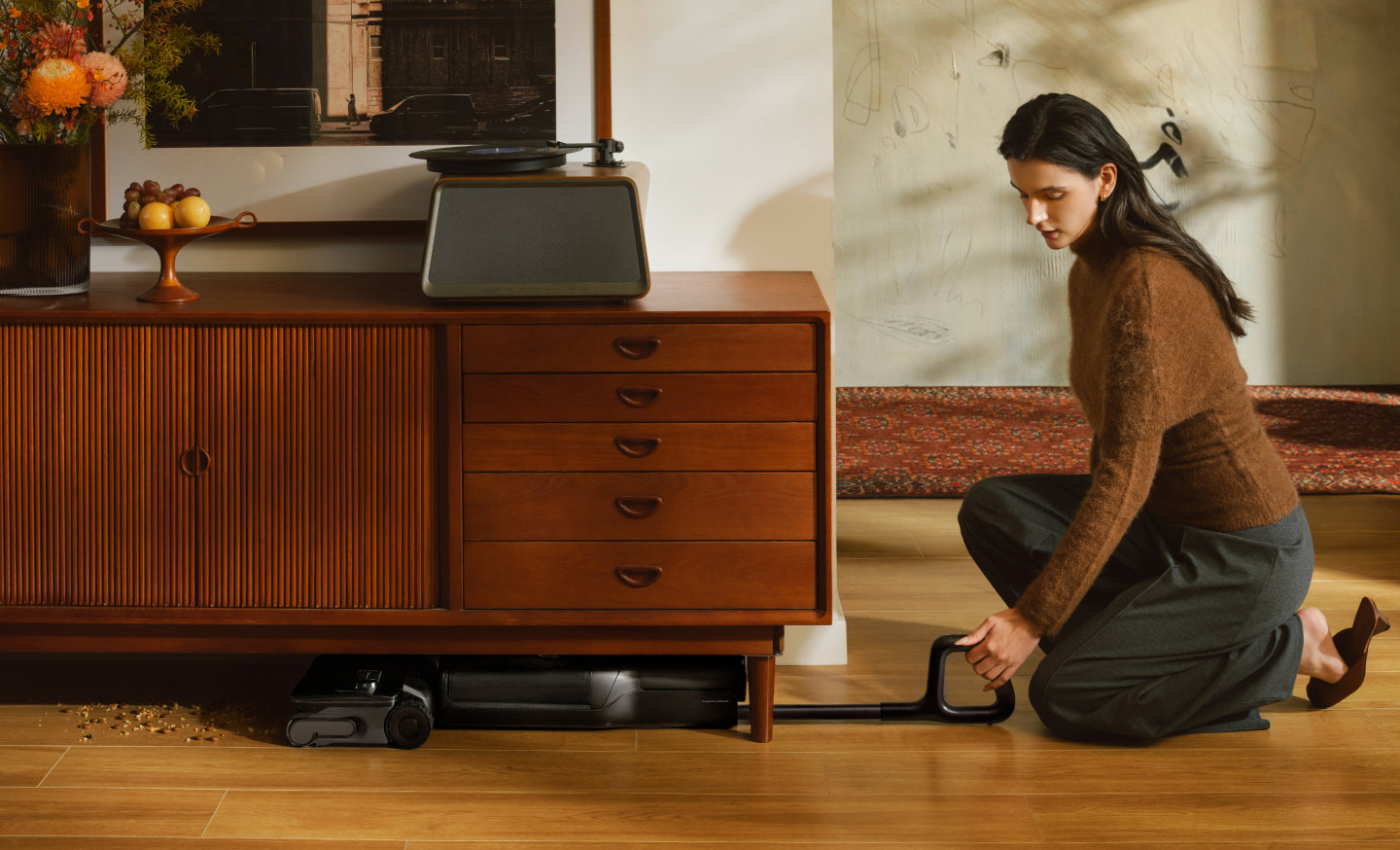 At just 12.5 cm (4.9 in) high¹⁹, it easily glides under furniture such as beds and sofas.